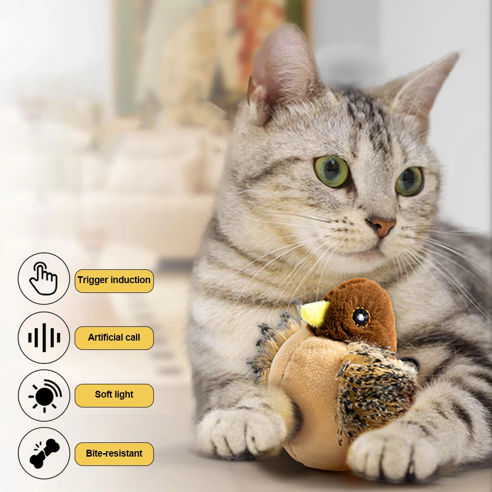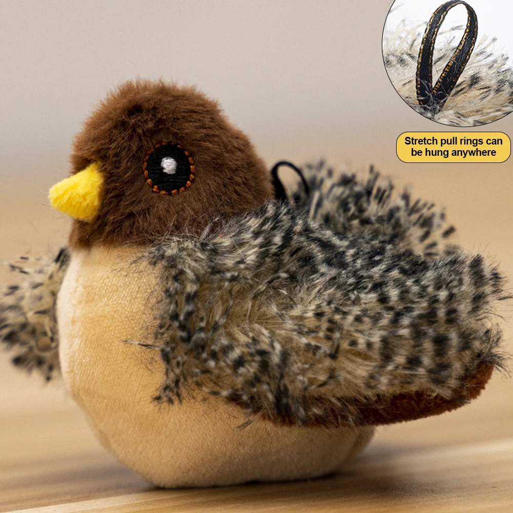 Interactive Cat Toys Flying Bird Cat Toy Flapping Wings Sparrow Toys Vivid Chirping Simulation Bird Interactive Cat Toy